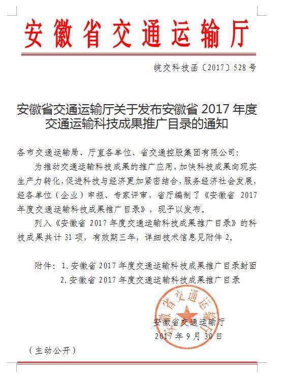 24小時服務(wù)熱線| 安徽省交通運輸廳關(guān)于發(fā)布安徽省2017年度交通運輸科技成果推廣目錄的通知 |